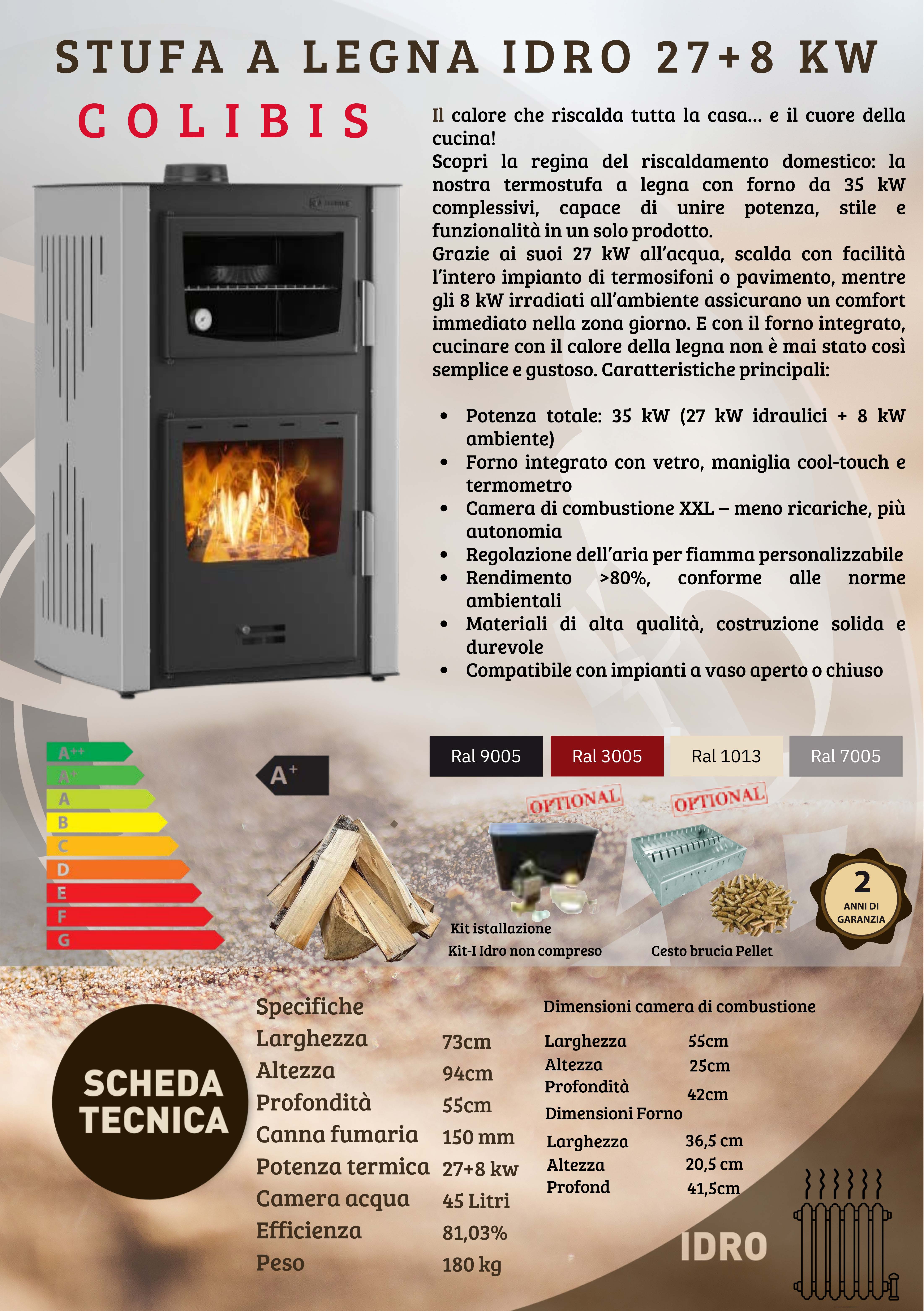 🔥 Termostufa a Legna con Forno – 27 + 8 kW modello Colibis