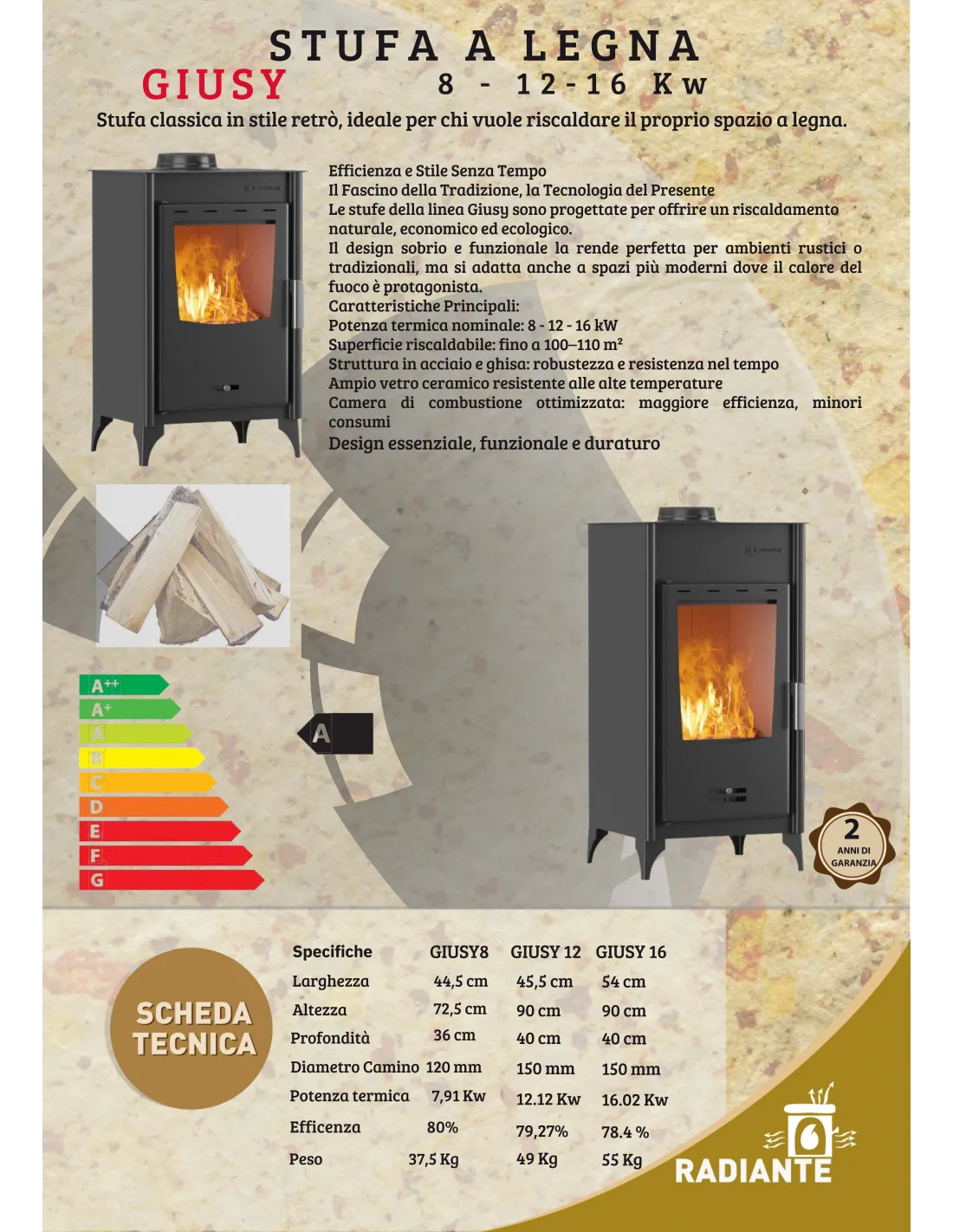 La stufa a legna classica Giusy da 16 kW è una scelta intramontabile per chi cerca potenza termica, semplicità e durata nel tempo. Caratterizzata da linee robuste e materiali resistenti, questa stufa è perfetta per ambienti rustici, case di campagna o abitazioni che puntano all’indipendenza energetica.