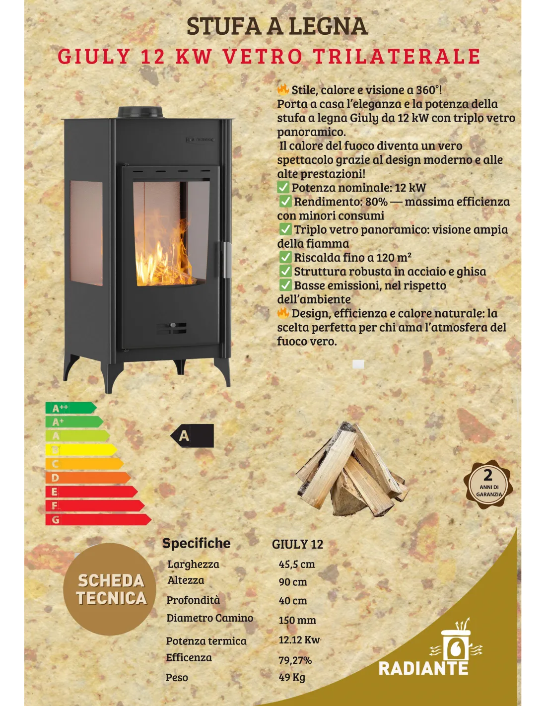 Stufa a Legna Classica Giuly 12 kW – Vetro TRILATERALE