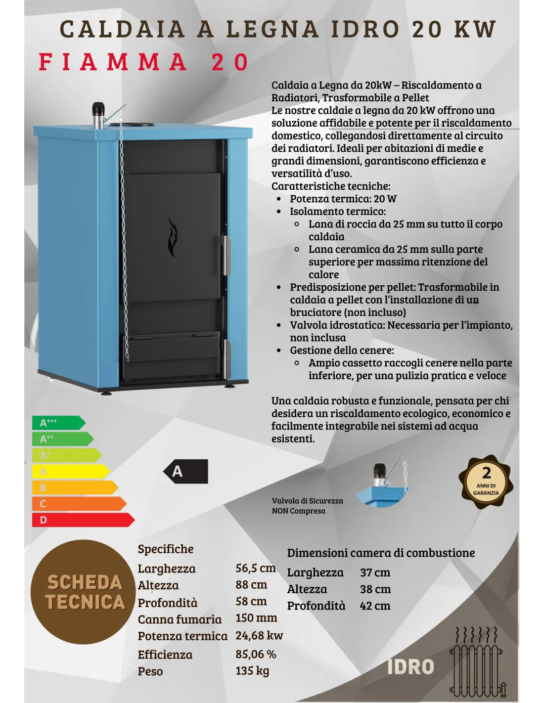 🔥 Caldaia a Legna da 20 kW – Riscaldamento a Radiatori, Convertibile a Pellet
