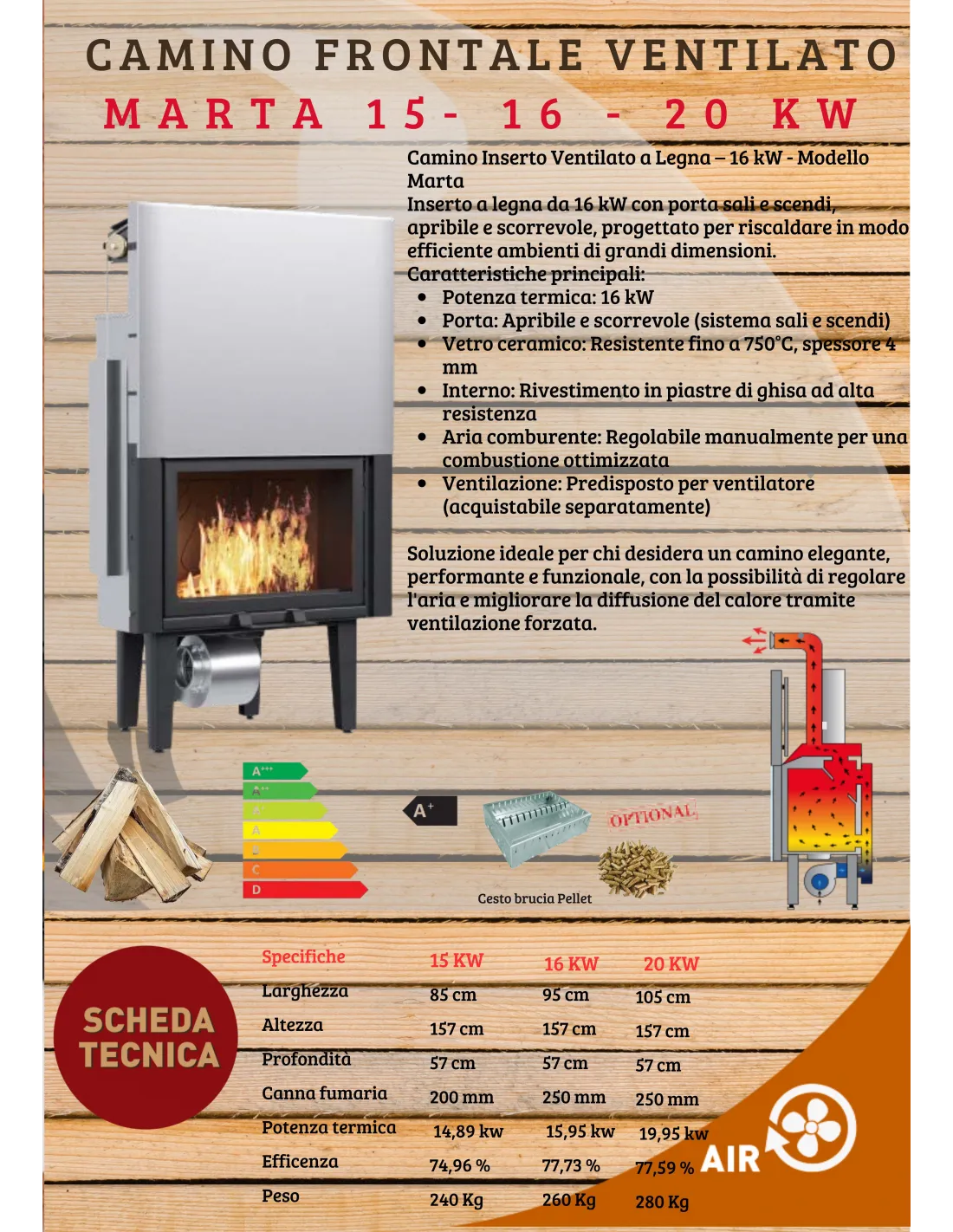 Camino Inserto Ventilato a Legna – 16 kW - Modello Marta