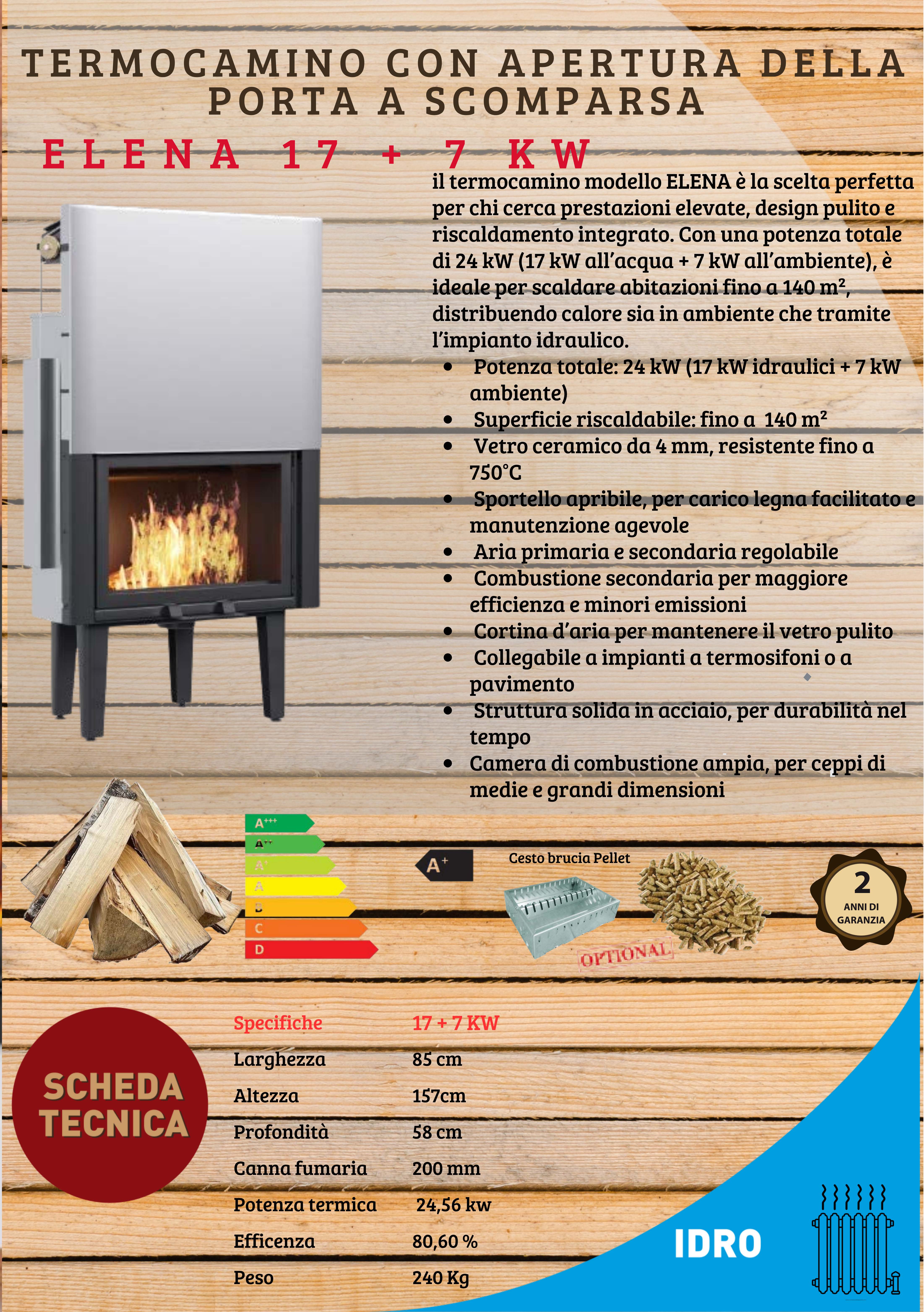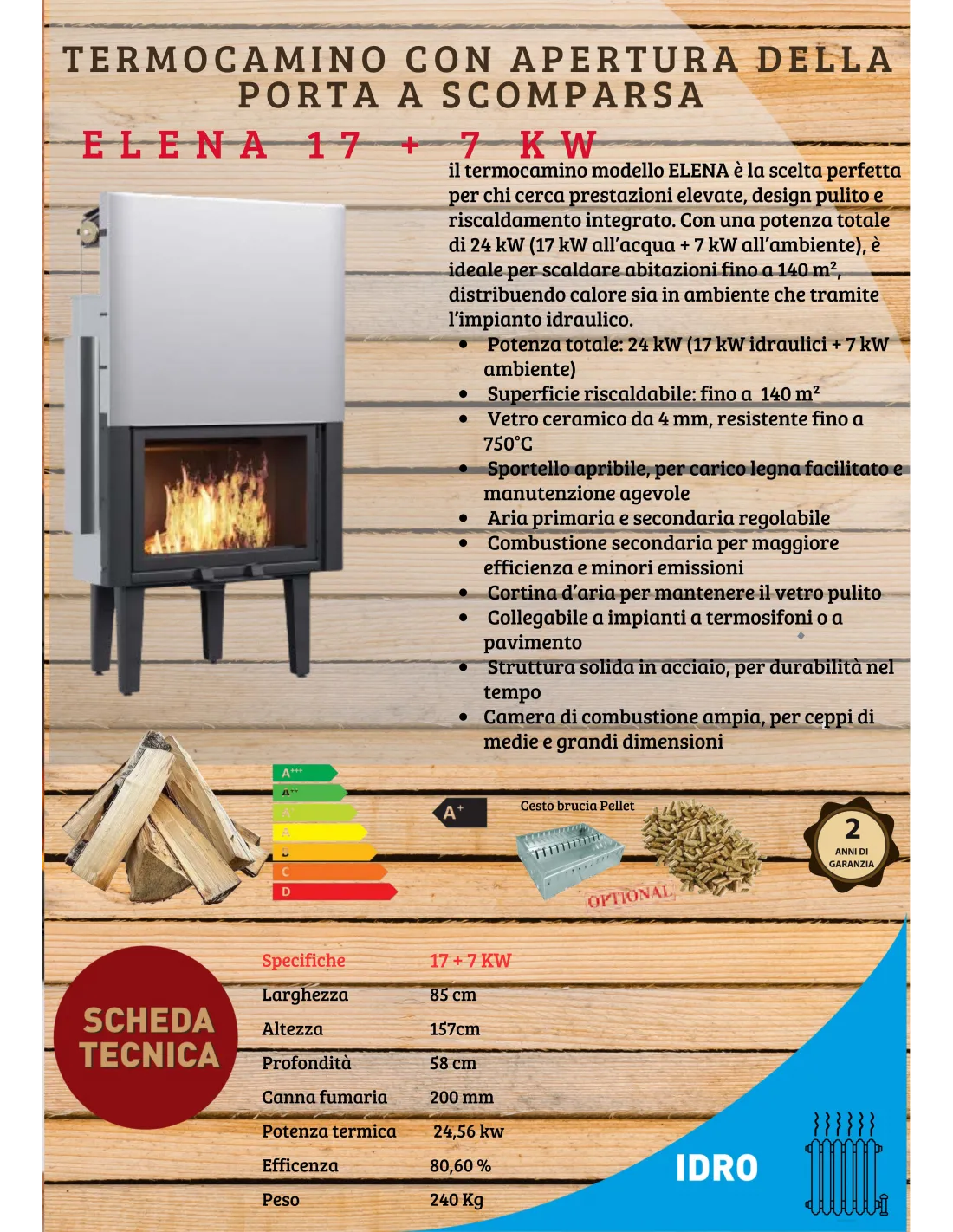 🔥 Inserto Camino IDRO Modello ELENA – 17 + 7 kW