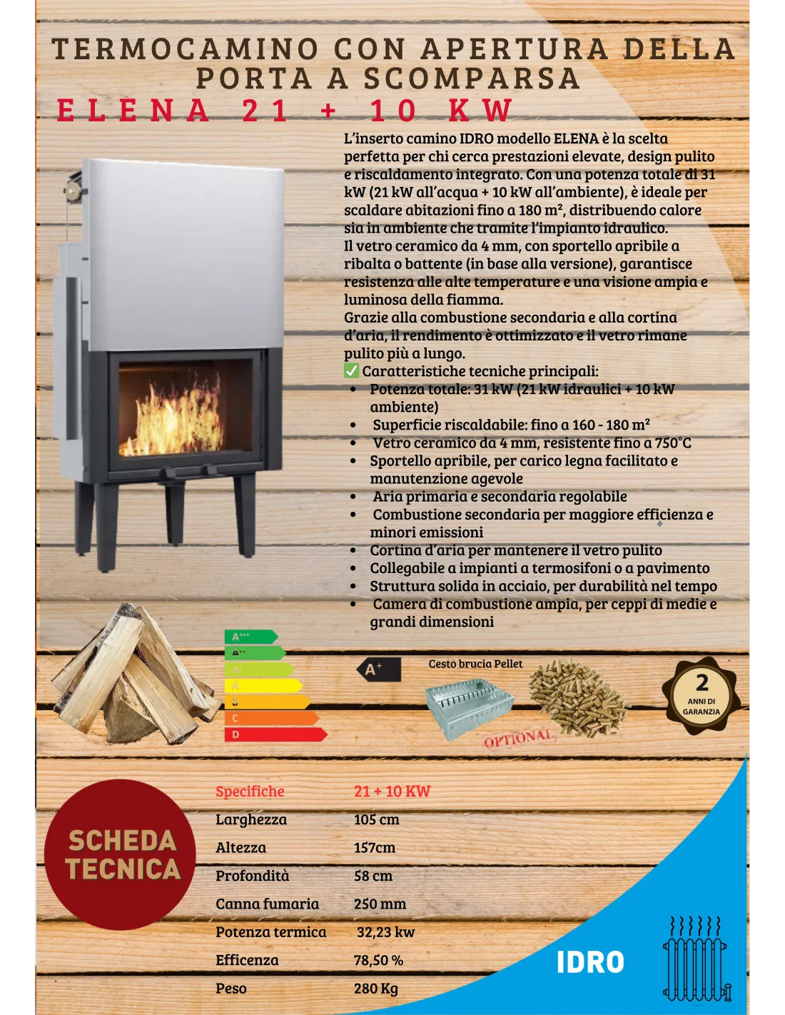 🔥 Inserto Camino IDRO Modello ELENA – 21 + 10 kW
